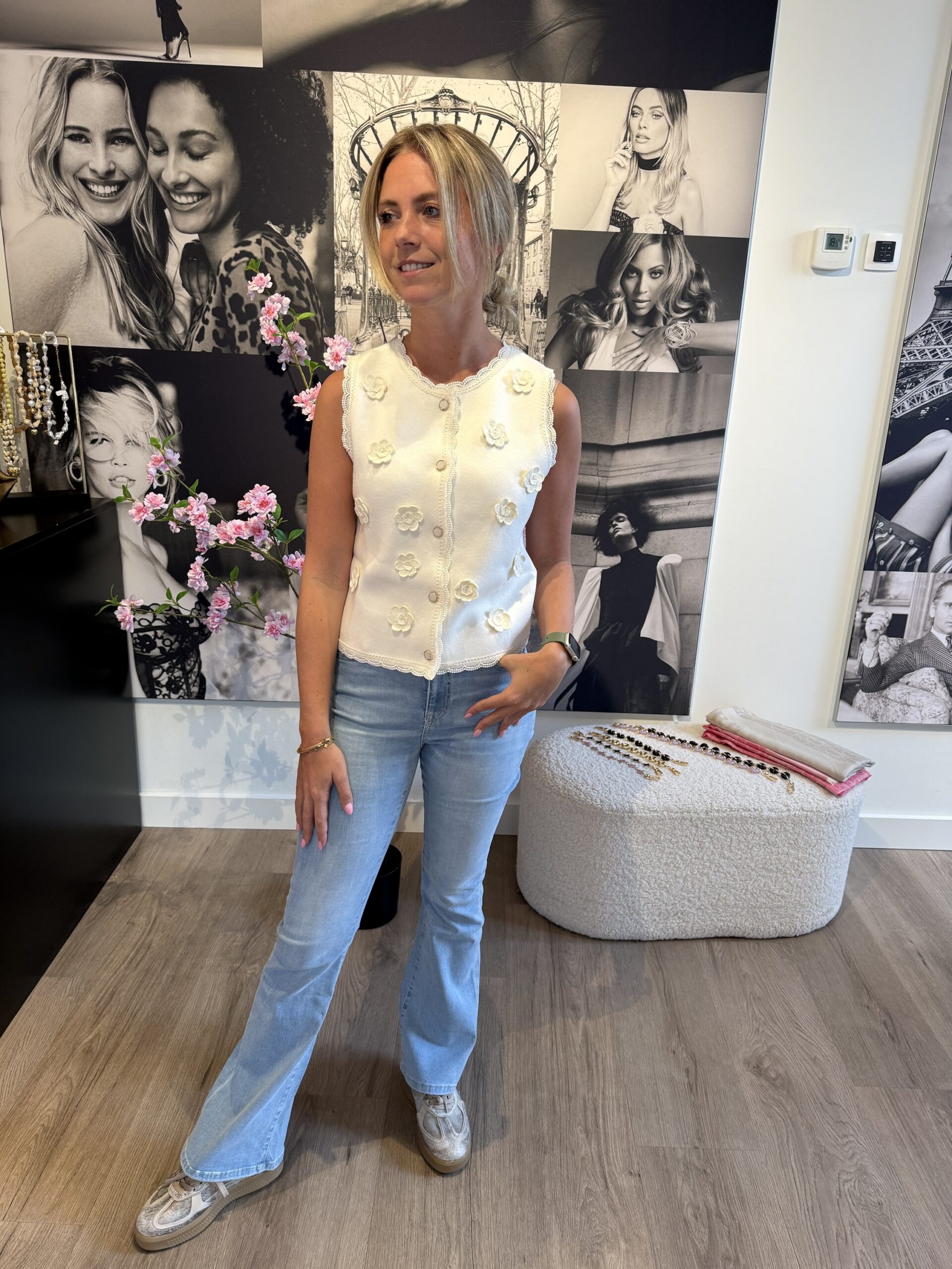 Het model is perfect te dragen als top, maar ook prachtig te combineren als gilet over een blouse of jurkje. De pasvorm is normaal en valt op maat, waardoor je je gebruikelijke maat kunt bestellen. Een veelzijdig item dat elke outfit net dat beetje extra geeft.