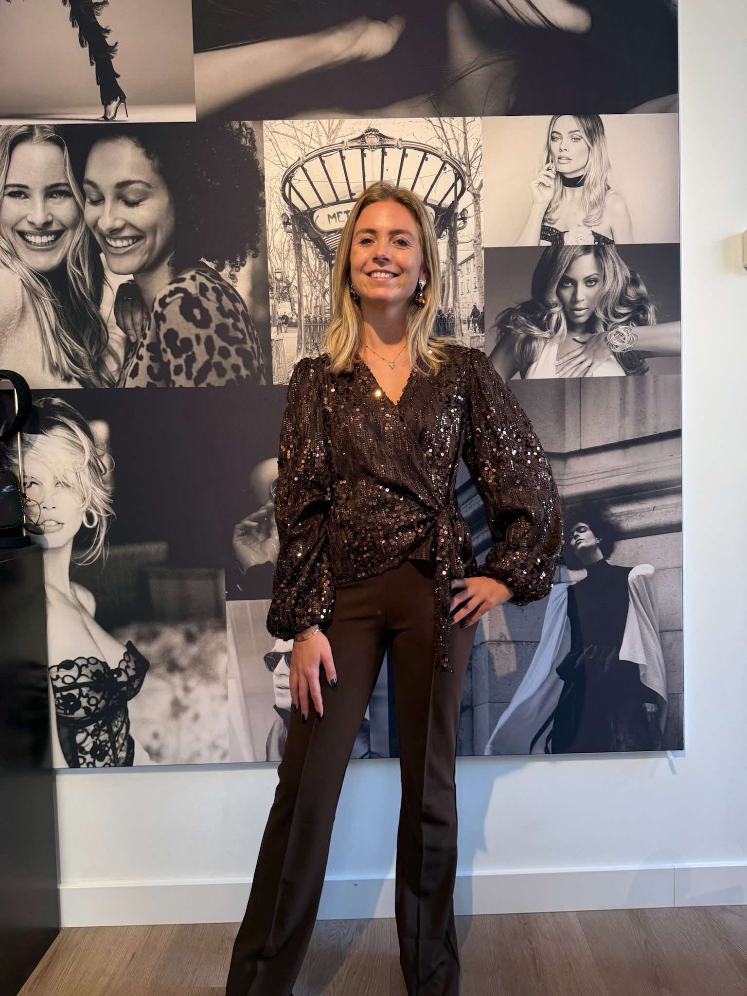 Deze prachtige bruine blouse is afgewerkt met glitters die je look meteen feestelijk maken. Elegant, vrouwelijk en ideaal voor een diner, borrel of kerstfeest. Combineer ‘m met een mooie pantalon of rokje voor de ultieme party outfit.