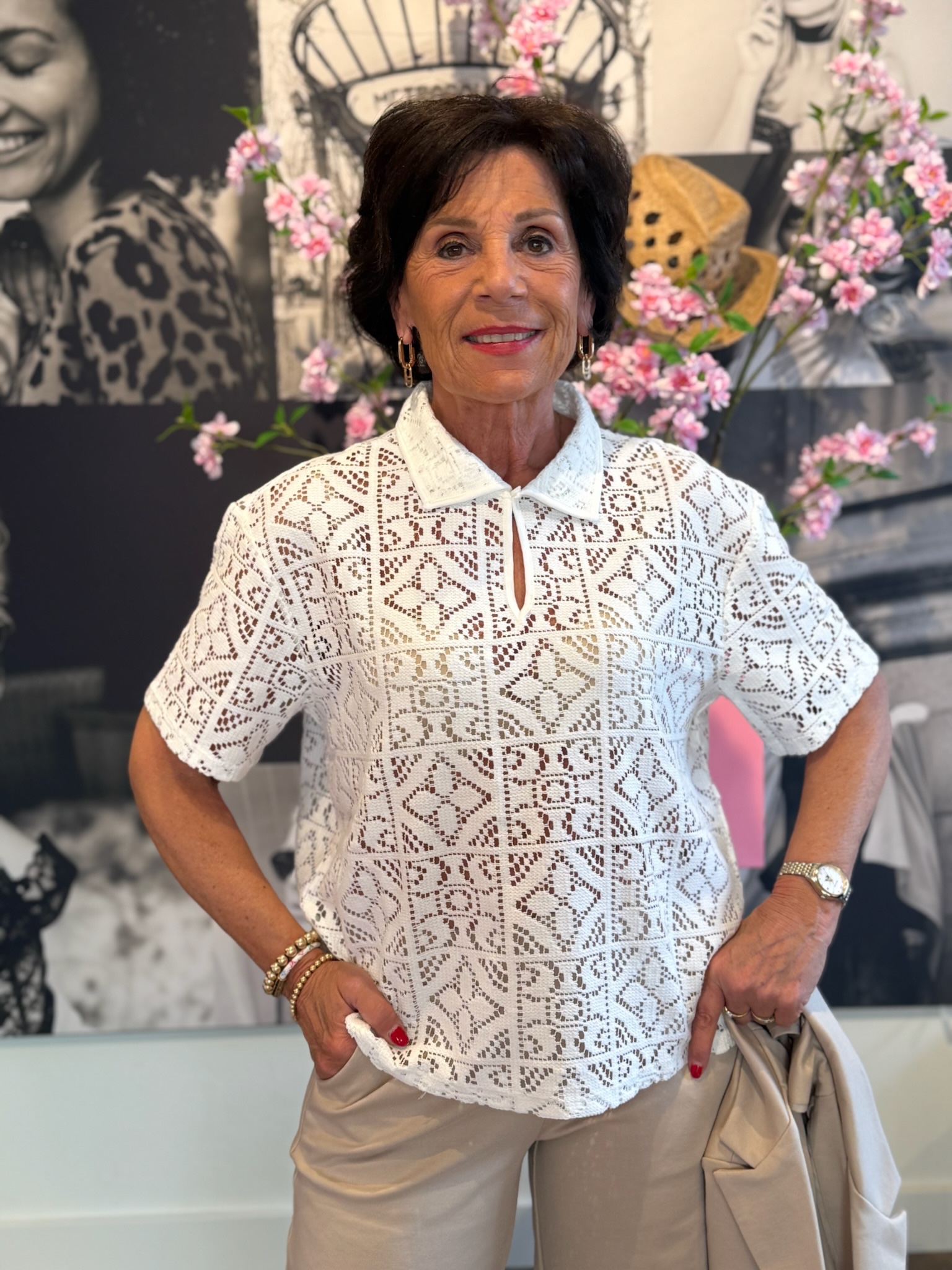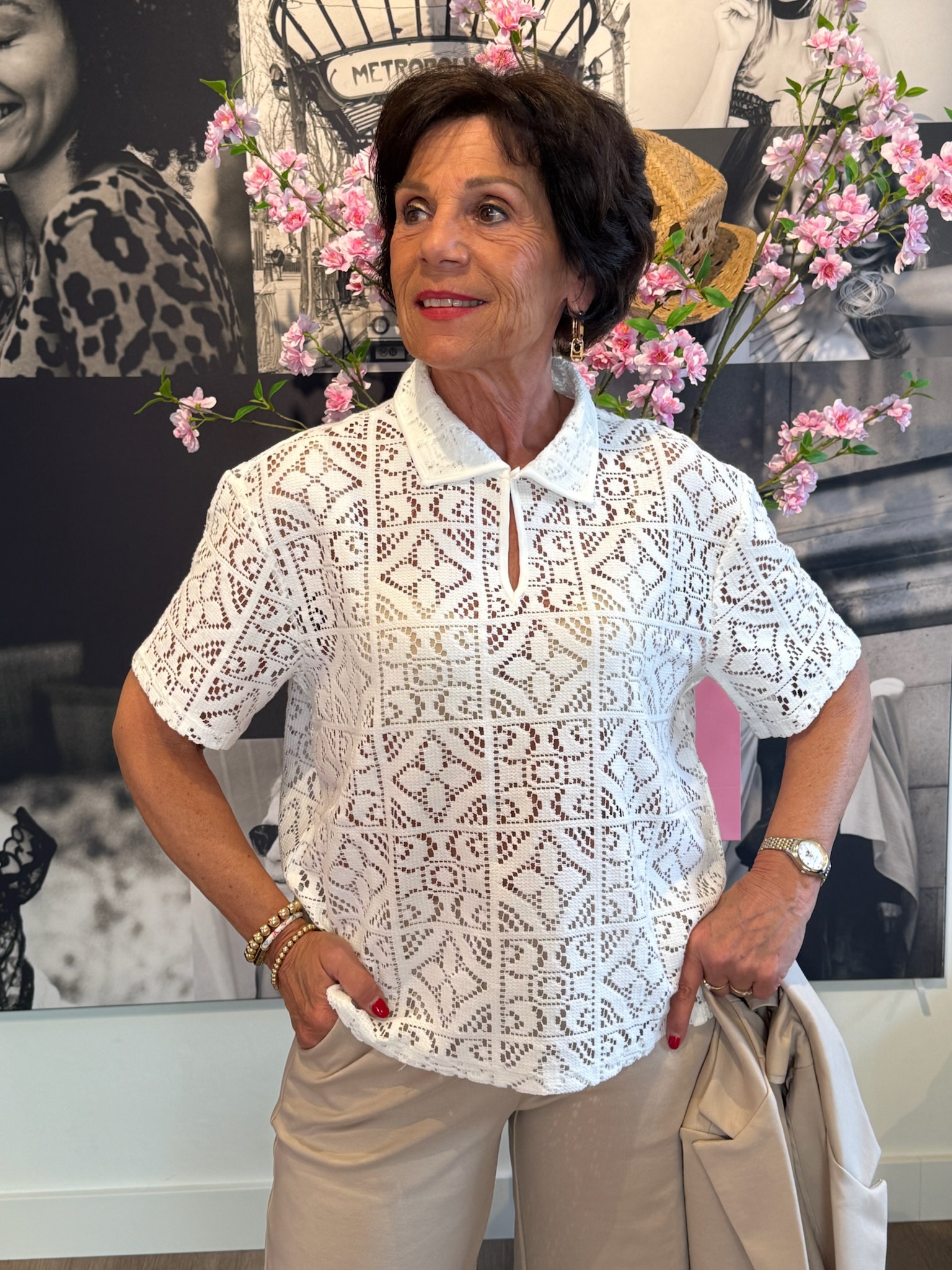 Deze stijlvolle witte top met polokraag heeft een elegante en sportieve uitstraling. De top is gemaakt van een prachtige stof, waardoor hij comfortabel draagt en een luxe look heeft.