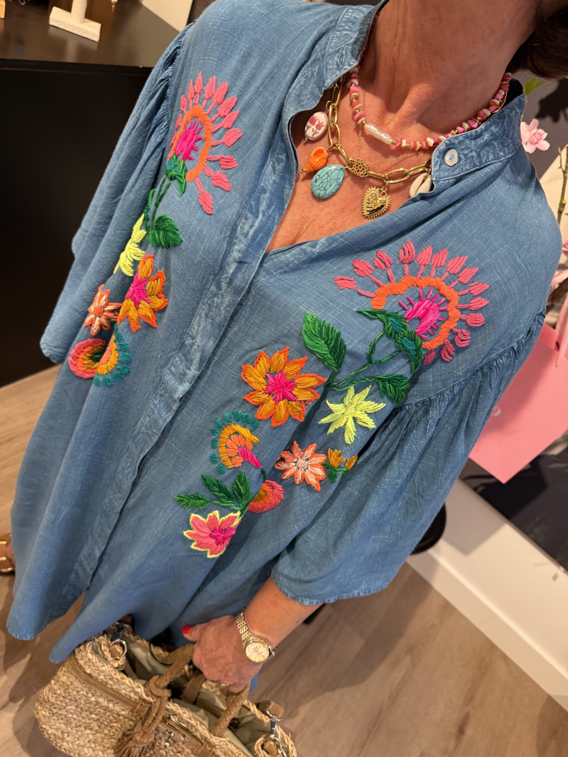 Prachtige jurk in zachte viscose met verfijnde broderie details.
