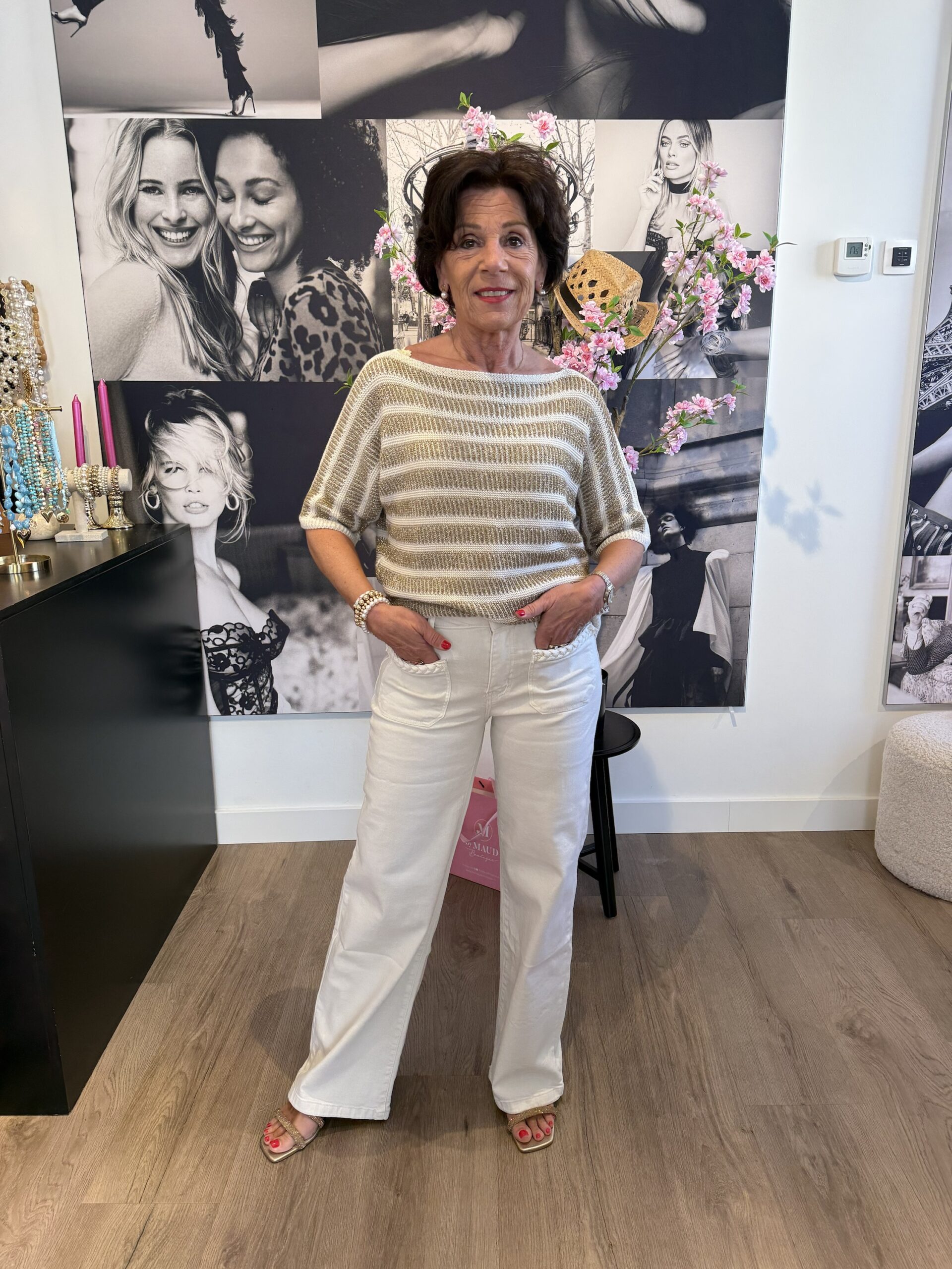 Dit prachtige truitje van Kimara in off-white met subtiele gouden accenten is een echte eyecatcher. De elegante boothals zorgt voor een vrouwelijke en stijlvolle uitstraling, terwijl de luxe stof heerlijk zacht aanvoelt op de huid. Dankzij de mooie kwaliteit en verfijnde afwerking is dit truitje perfect voor zowel een casual als een chique look. Een tijdloos item dat je garderobe direct een stijlvolle upgrade geeft.