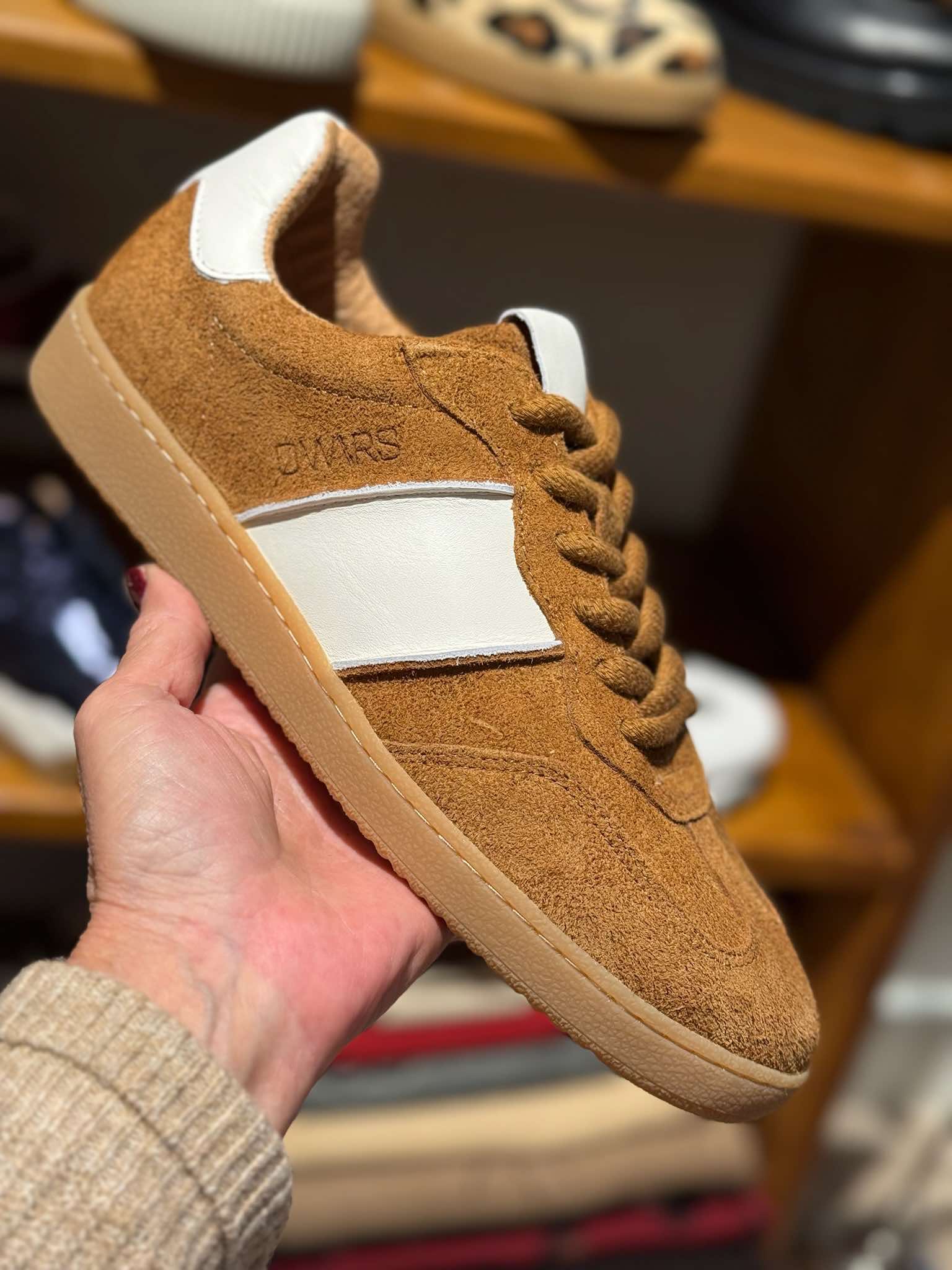 Deze te gave sneakers met lage zool zijn een absolute trend! De Poona sneaker met cognac en off white details zijn een must onder iedere outfit. De sneaker is aan de buitenzijde gemaakt van suede aan de binnenzijde gemaakt van leer.