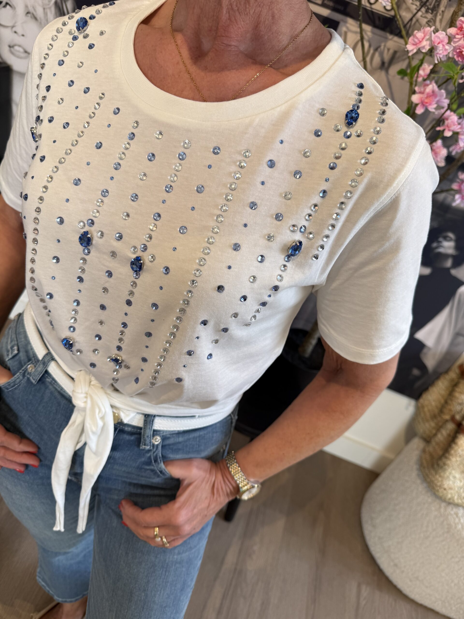 Dit korte witte T-shirt van Mark Up is een echte eyecatcher dankzij de verschillende steentjes. Speels, stijlvol en perfect om je outfit een trendy en opvallende touch te geven. ✨